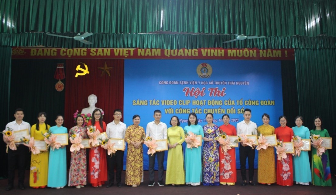 Ban tổ chức trao giải cho các đội thi Đạt giải Hội thi “Sáng tạo Video Clip hoạt động của Tổ Công đoàn