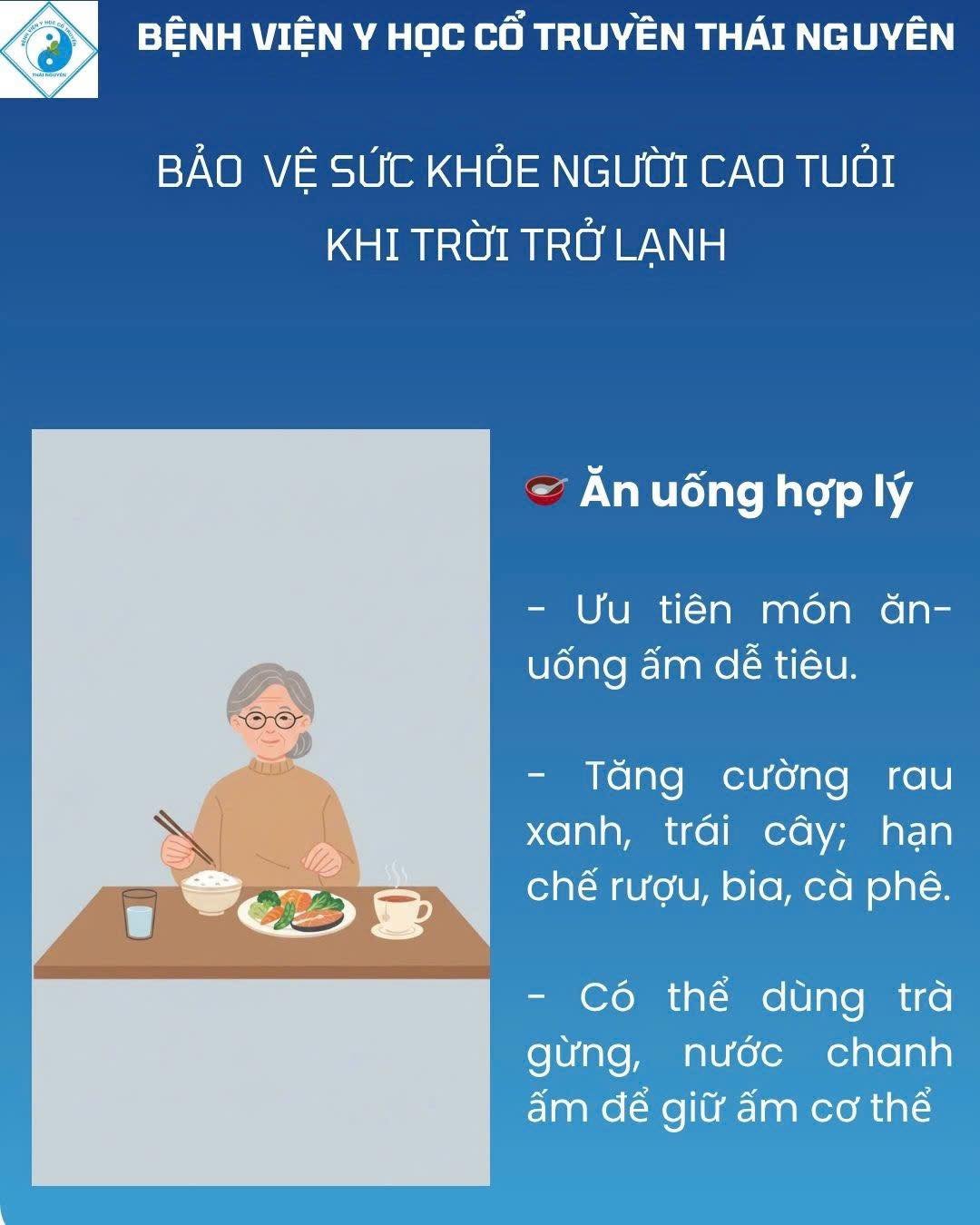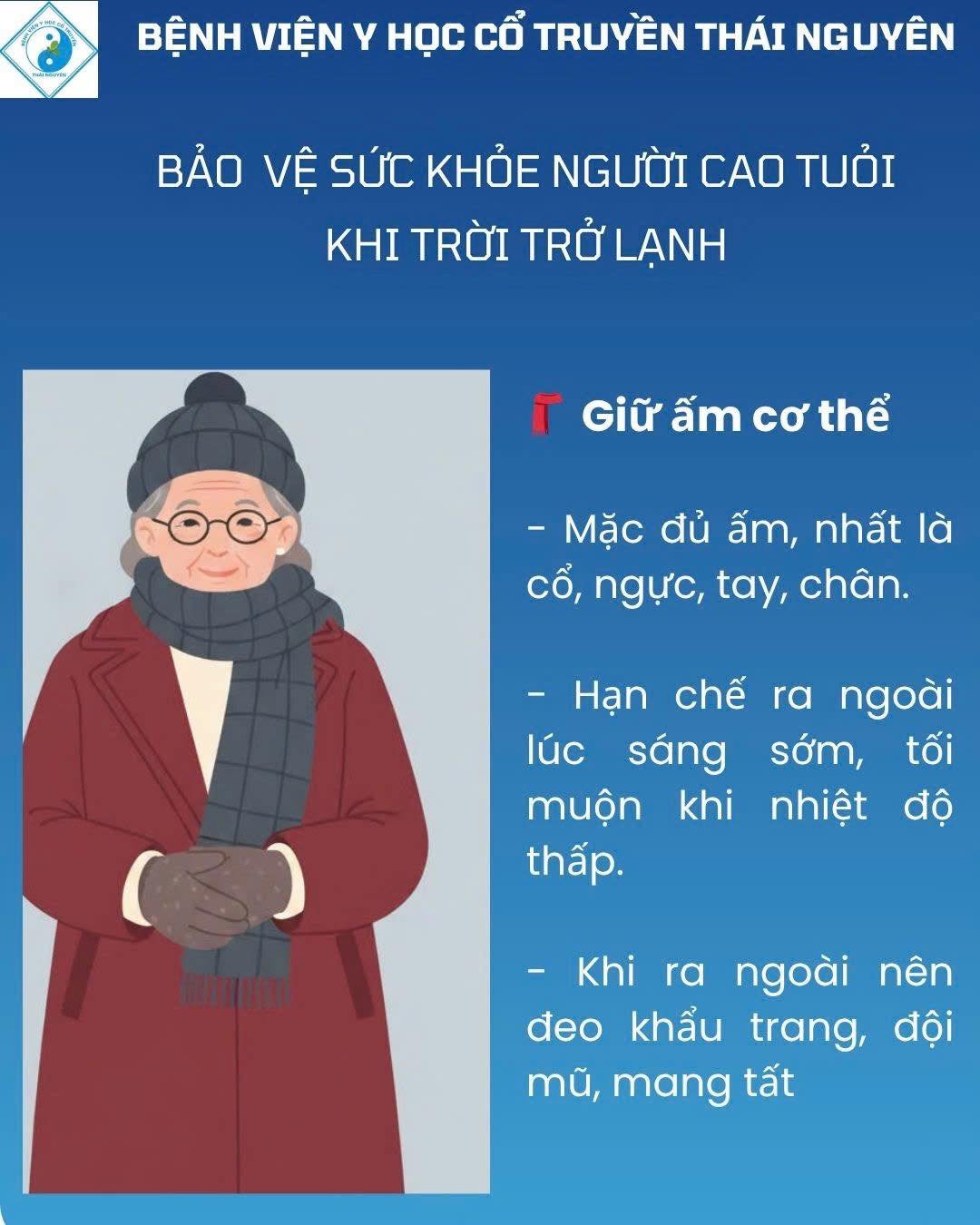 Thời tiết đã chuyển sang những ngày lạnh đầu mùa, đây là thời điểm người cao tuổi, người có bệnh mãn tính (tim mạch, huyết áp, khớp, hô hấp…) dễ gặp vấn đề sức khỏe nhất.