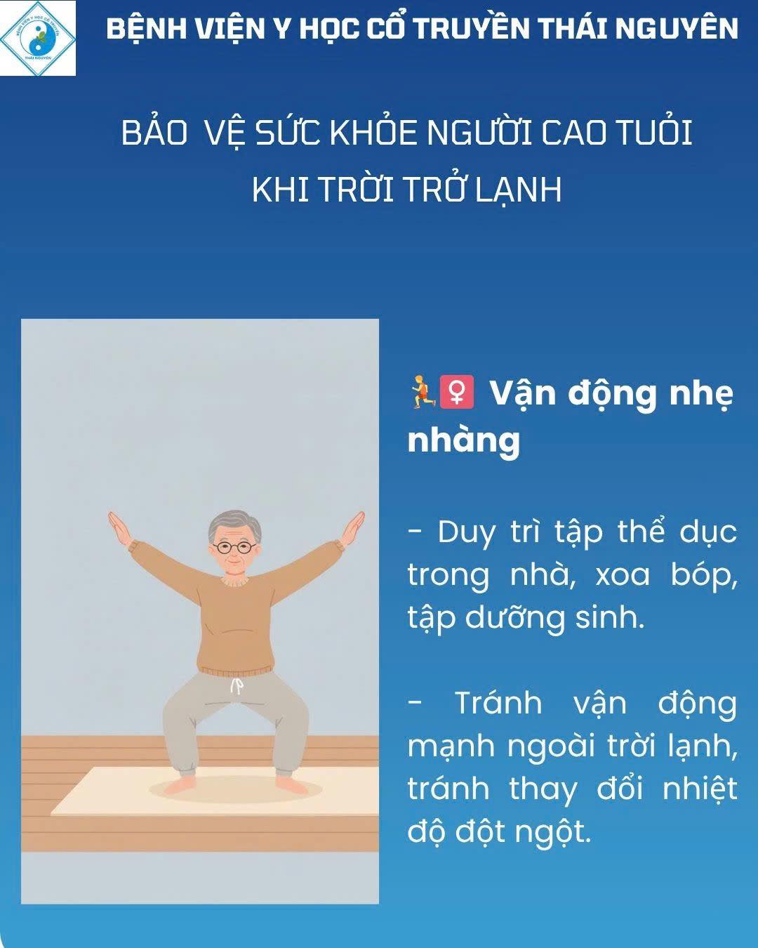 • Duy trì tập thể dục trong nhà, xoa bóp, tập dưỡng sinh.