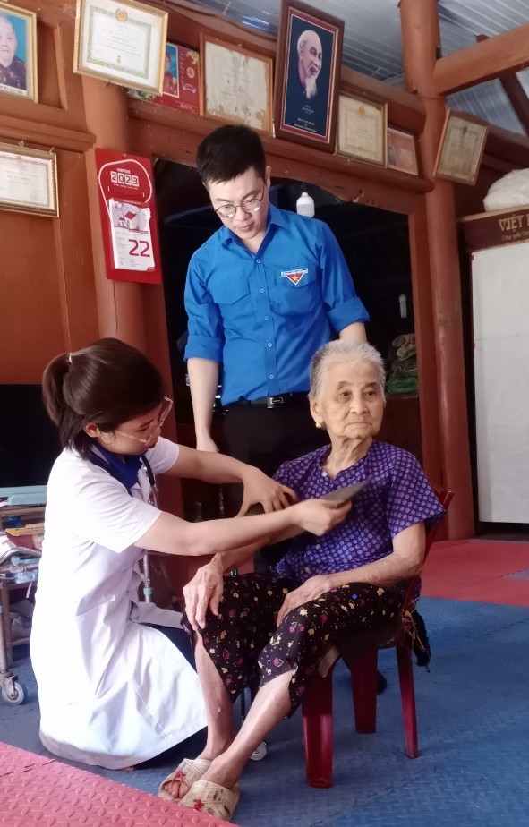 Đại diện chính quyền địa phương cùng các bác sỹ đến thăm khám, tư vấn sức khỏe tại nhà cho các    đối tượng chính sách
