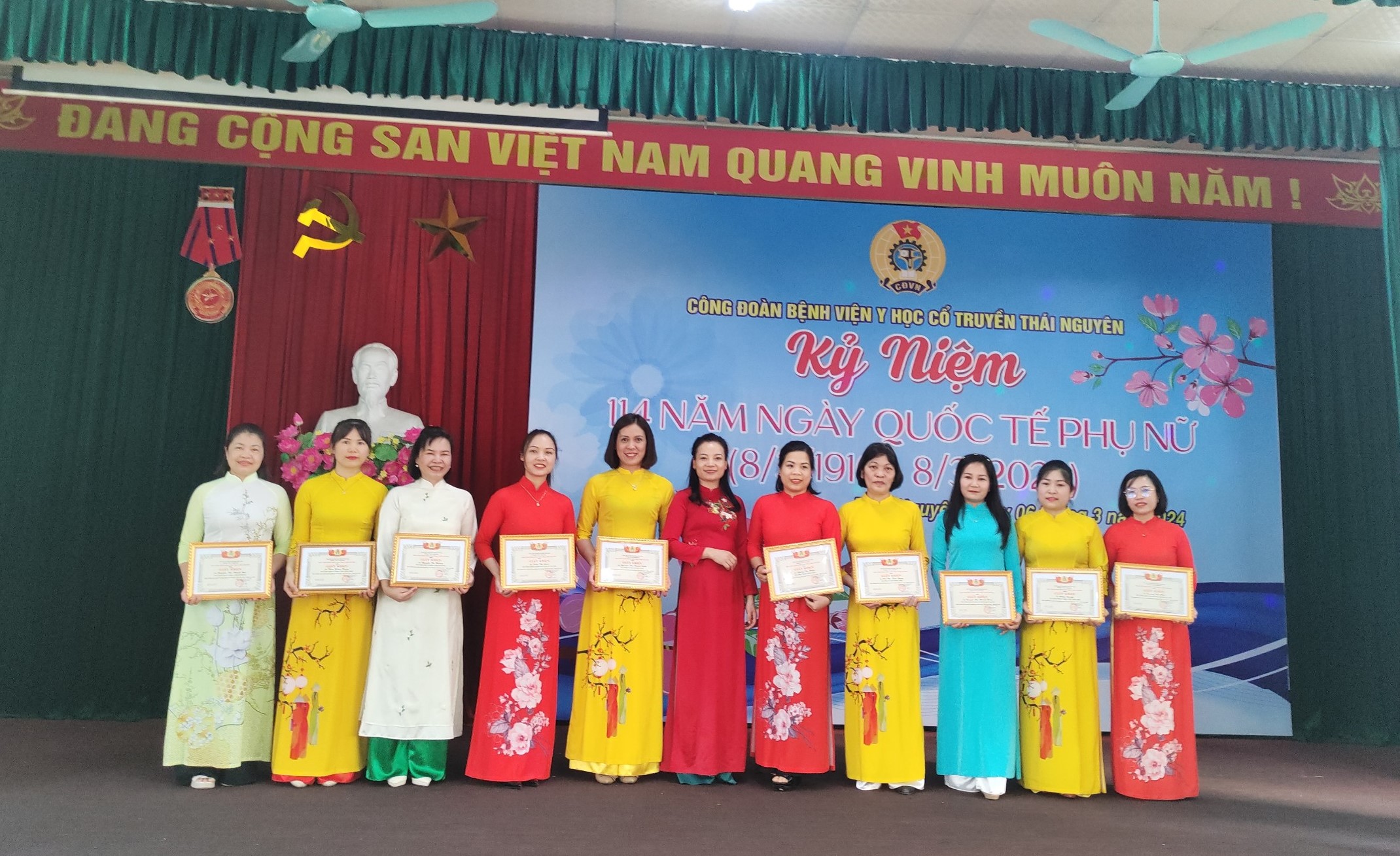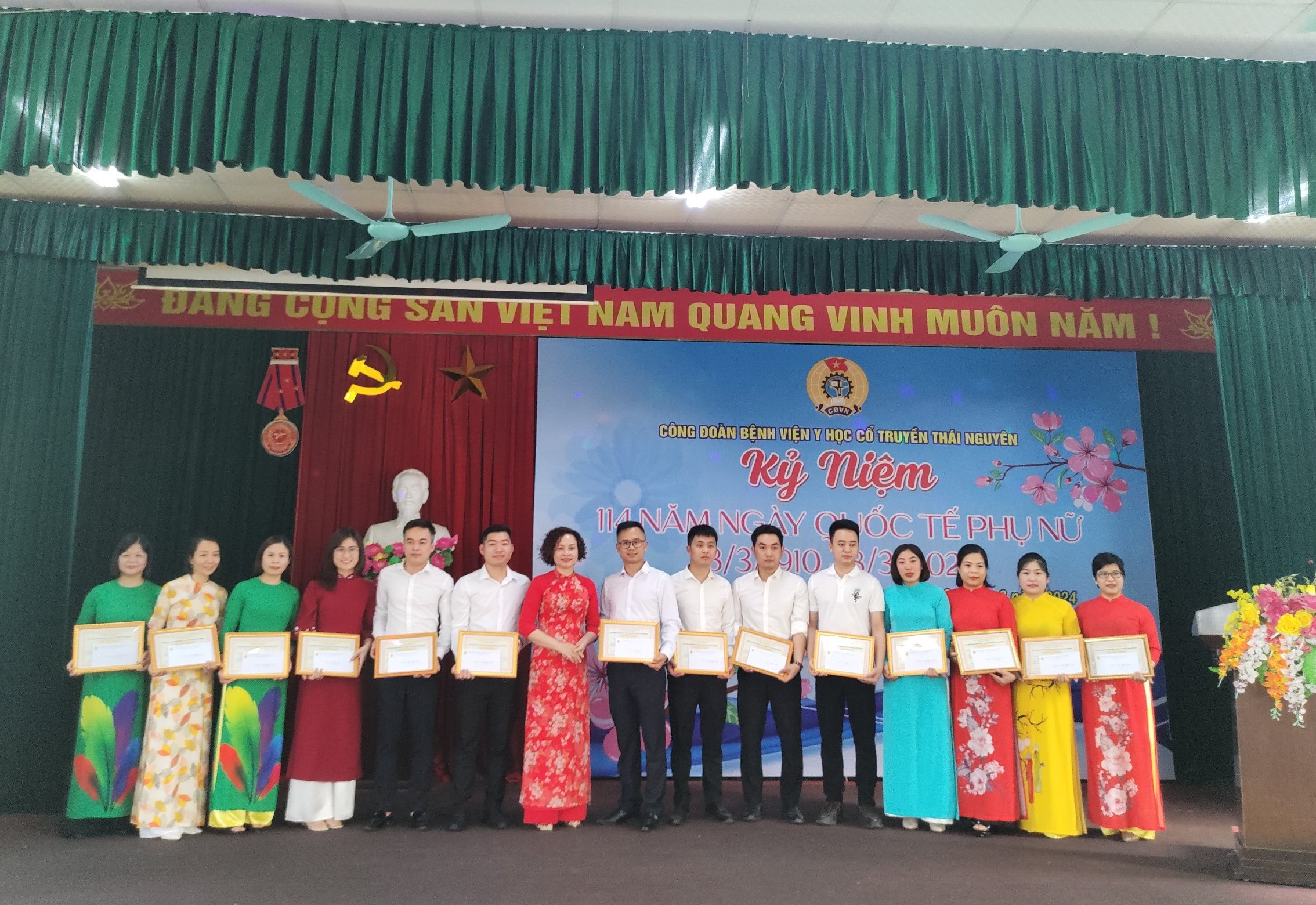 Chiều ngày 06/3/2024, Công đoàn Bệnh viện Y học cổ truyền Thái Nguyên đã tổ chức chương trình Kỷ niệm 114 năm ngày Quốc tế phụ nữ (8/3/1910 – 8/3/2024), đến dự chương trình có đồng chí Trương Thị Thu Hương, Bí thư Đảng ủy bộ phận- Giám đốc Bệnh viện, đồng chí Nguyễn Thị Thủy- Phó Giám đốc- Chủ tịch Công đoàn cùng toàn thể viên chức, người lao động đang công tác tại Bệnh viện.