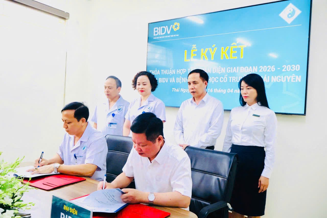 Sáng ngày 16/4/2026, Bệnh viện Y học cổ truyền Thái Nguyên đã tổ chức Lễ ký kết Thỏa thuận hợp tác với Ngân hàng TMCP Đầu tư và Phát triển Việt Nam (BIDV).